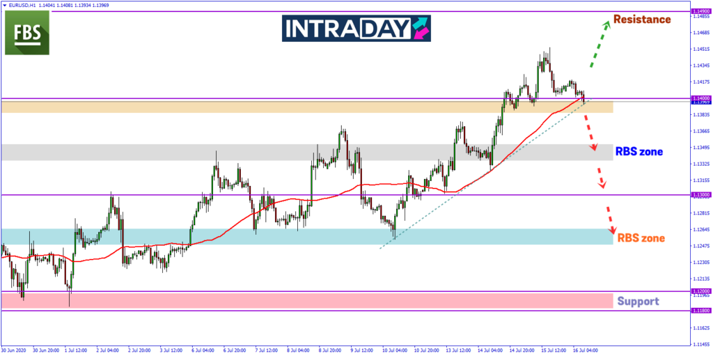 Awal sesi Eropah melihatkan turun ke paras tersebut menguji paras sokongan Moving Average 50 (MA50) di rangka masa 1 jam pergerakan harga pada carta EUR/USD yang juga berada di zon RBS (resistance become support).