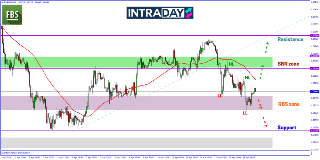 Namun jika harga terus membuat kenaikan lebih tinggi, harga akan kembali menuju zon SBR (support become resistance) di atas paras 1.0920.