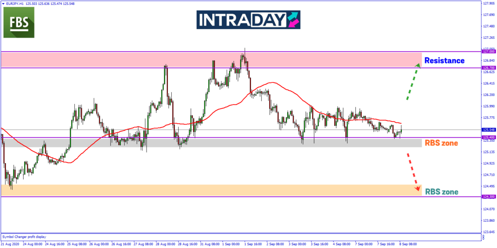 Jika penurunan berjaya diteruskan menembusi zon tersebut, harga dijangka akan menuju zon support pada 124.300.