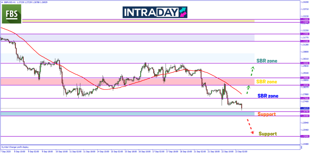 Penurunan harga menuju paras sokongan sekitar 1.26700-1.26400 yang merupakan zon RBS (resistance become support) sebelum ini.