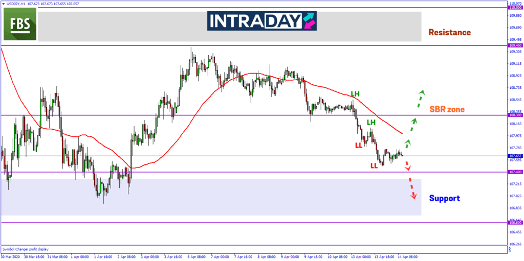 Jika diperhatikan pergerakan harga pada carta pasangan matawang USD/JPY, harga telah menunjukkan corak penurunan sejak minggu lalu dengan pergerakan harga lebih mendatar pada awal minggu sebelum penurunan telah melepasi paras sokongan 108.300.