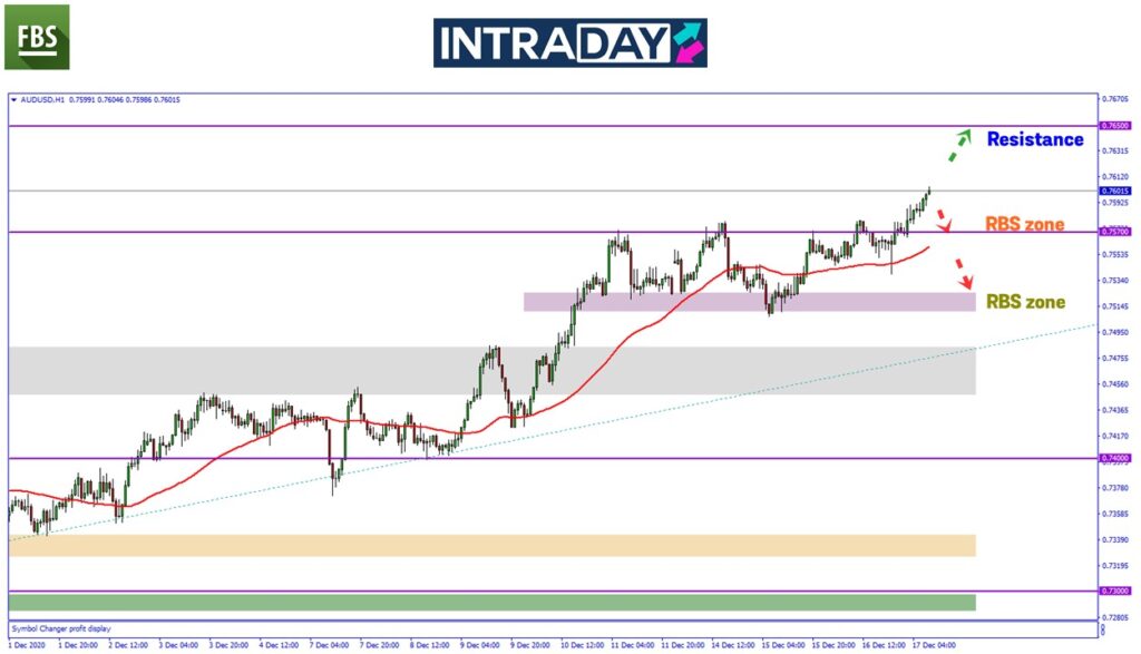 Kenaikan harga diteruskan pada sesi Asia pagi ini ke sekitar paras ketinggian 0.76000 setakat awal pembukaan sesi Eropah sekaligus merekodkan paras tertinggi terbaru sejak Jun 2018.