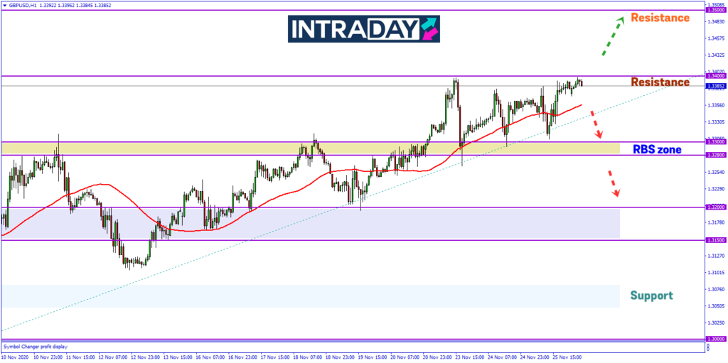 Jika momentum berterusan, harga dilihat akan terus membuat kenaikan lebih tinggi menembusi resistance 1.34000.