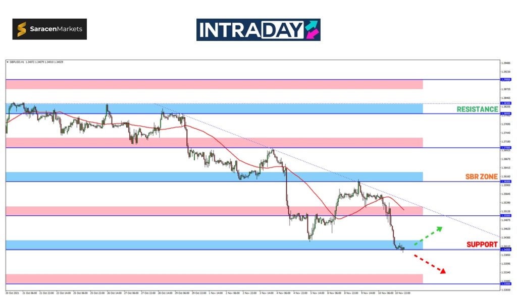 Terjunan yang ketara akan memperlihatkan harga mencecah ke zon sokongan berikutnya pada 1.33000 bagi mengukuhkan trend bearish dan seterusnya akan sekali lagi catat paras terendah terbaharu.