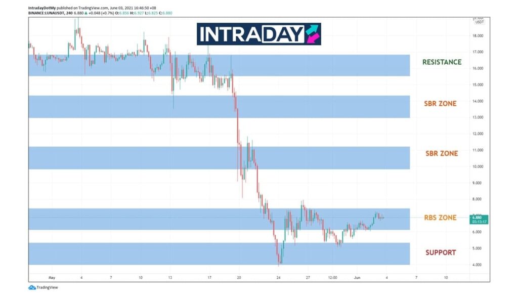 Namun, prestasi Luna merosot selepas bulan Mac melihatkan harga susut lebih 80%, menjunam sehingga ke paras sokongan $4.0 yang turut dipengaruhi kejatuhan harga Bitcoin (BTC).