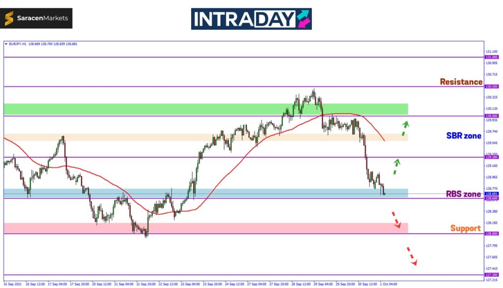 Jika penurunan harga kekal diteruskan di bawah zon RBS 128.600, zon support pada 128.00 akan kembali menjadi tumpuan harga semula setelah diuji pada dagangan minggu lalu.