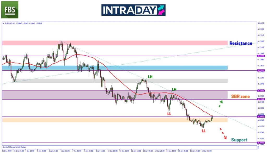 Seperti pergerakan harga yang dipamerkan pada carta pasangan mata wang EUR/USD, penurunan yang berlaku agak perlahan sebelum kenaikan harga dipamerkan semula selepas harga mencecah paras terendah hampir 1.20500.