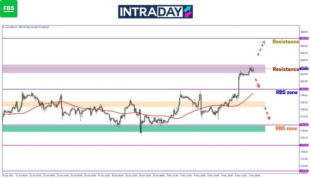 Jika harga kembali membuat penurunan, paras support terbaru akan berada pada paras 1800.00 dan membentuk zon RBS (resistance become support) terbaru.