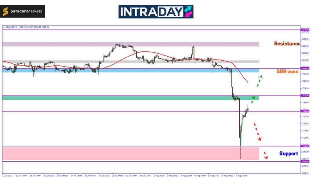 Susulan laporan pekerjaan NFP Amerika Syarikat (AS) yang memberangsangkan dan mendorong pengukuhan US dolar Jumaat lalu, harga emas telah menjunam dari zon harga 1800.00 sehingga ke zon tumpuan 1765.00.