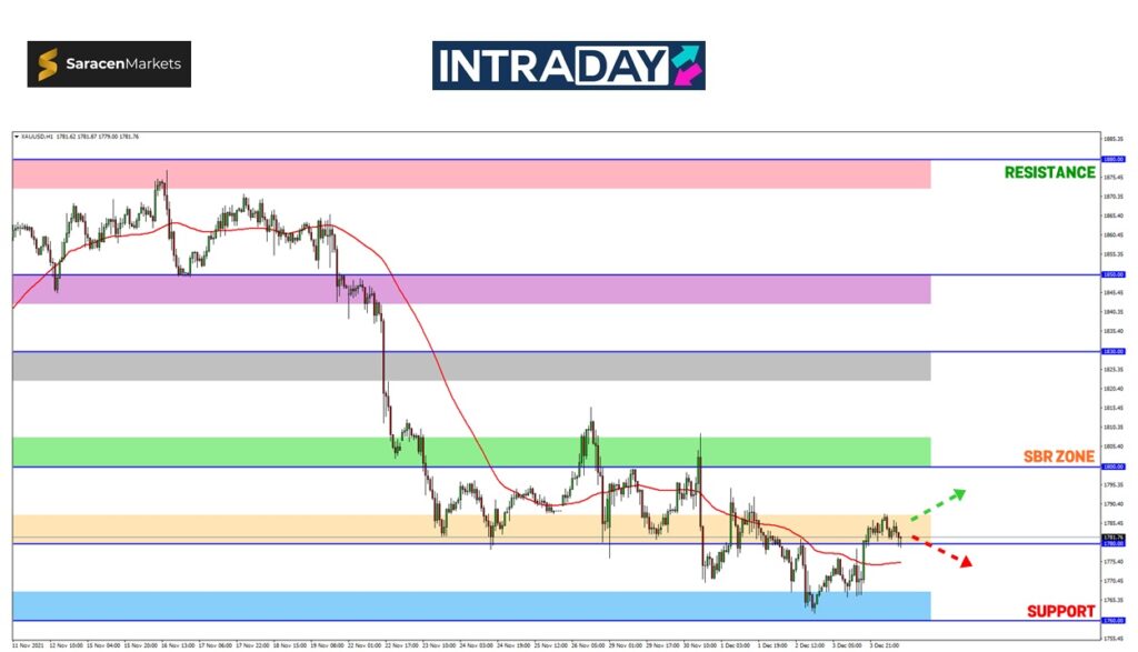 Bertitik tolak juga bahawa lonjakan tersebut telah menghasilkan peningkatan melebihi 250 pips untuk kembali mencapai zon SBR (support become resistance) 1780.00 yang menjadi sokongan sebelum ini.