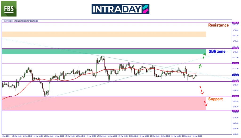 Sekiranya harga jatuh lebih rendah di bawah paras 1720.00, penurunan harga akan didorong sehingga ke paras support 1700.00 semula.