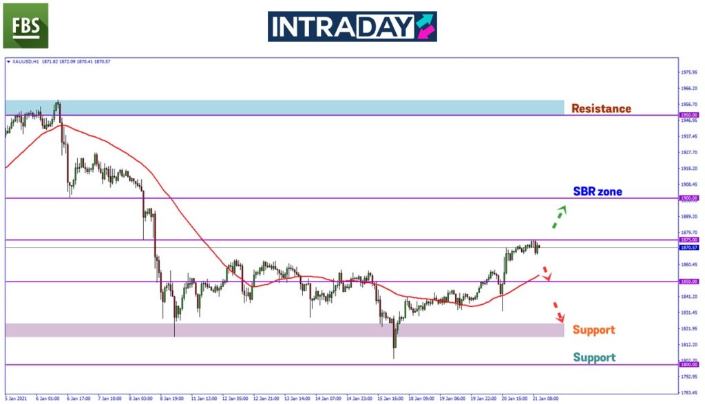 Sebaliknya, sekiranya harga berjaya melonjak melepasi rintangan 1875.00, kenaikan lebih tinggi harga disasarkan semula ke paras 1900.00.