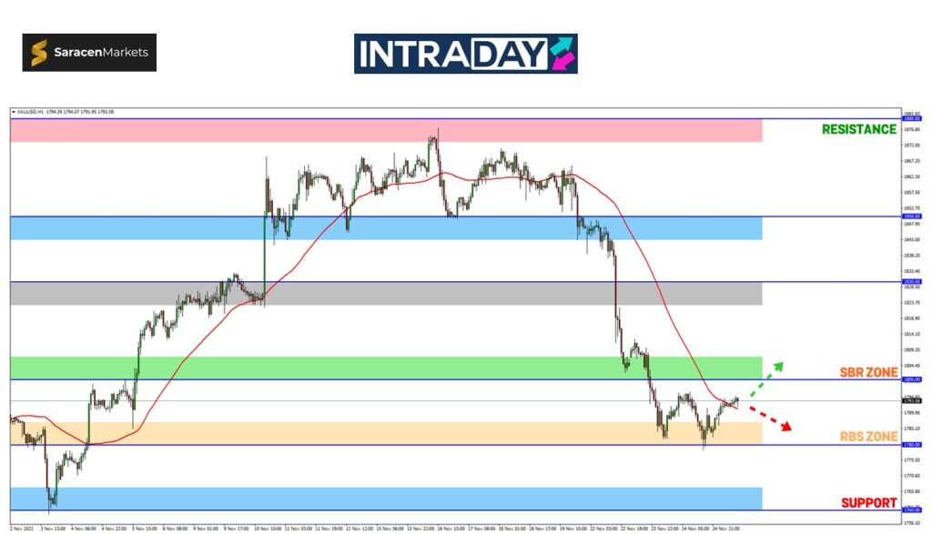 Demikian zon RBS (resistance become support) 1780.00 berkemungkinan akan kekal dijadikan sebagai zon utama yang terdekat untuk diuji dengan menjangkakan harga berupaya menembusi zon tersebut.