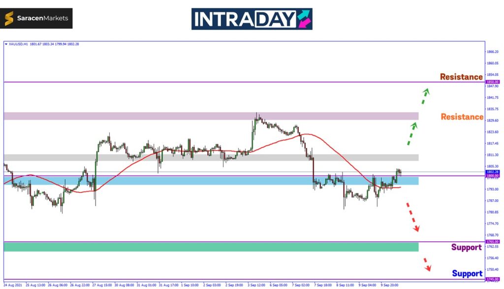 Meningkat semula di atas paras sokongan Moving Average 50 (MA50) pada rangka masa 1 jam dan cubaan untuk melepasi paras 1800.00 dilihat memberi petunjuk untuk pergerakan bullish semula.