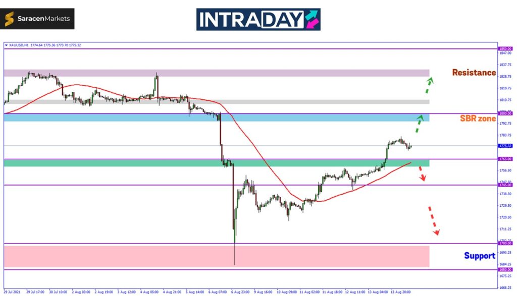 Selepas kenaikan harga telah pun melepasi halangan 1765.00, penganalisis menjangkakan harga emas pada minggu ini bakal menuju semula ke paras 1800.00 untuk menguji zon SBR (support become resistance) tersebut.