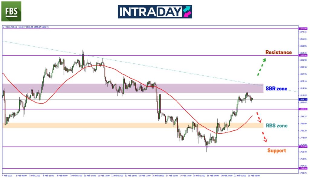 Seperti yang dijangkakan pada analisis sebelum ini, harga yang berjaya melepasi paras 1800.00 telah menuju ke zon SBR (support become resistance) 1820.00.