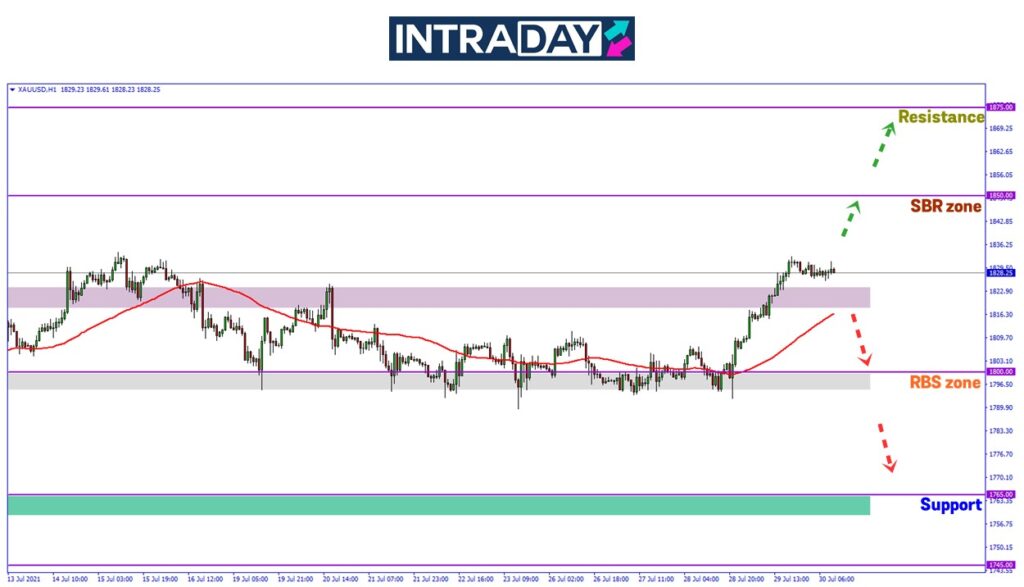 Melepasi paras ketinggian yang dicapai semalam, harga dijangka akan meneruskan kenaikan untuk menguji kembali zon SBR (support become resistance) pada 1850.00.