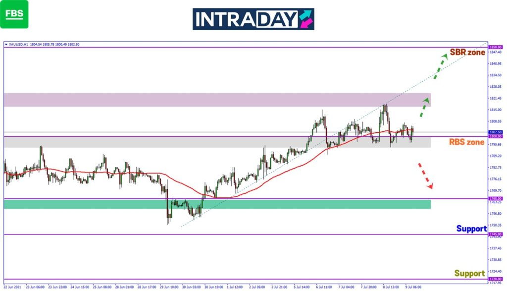 Sekiranya kenaikan harga berjaya diteruskan semula, zon harga 1820.00 dilihat masih menjadi zon tumpuan terhampir yang akan diuji terlebih dahulu sebelum trend bullish lebih jelas akan mendorong kenaikan harga emas menuju zon SBR (support become resistance) pada 1850.00.