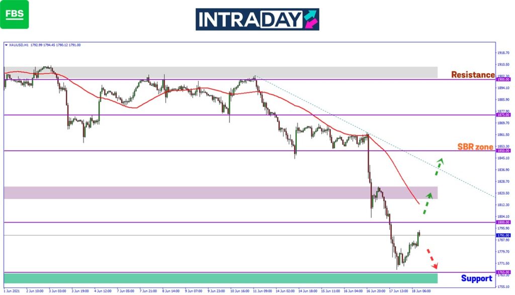 Harga dijangka akan menguji paras 1800.00 sebelum menyambung penurunan lebih rendah sehingga zon support 1765.00 akan diuji semula.