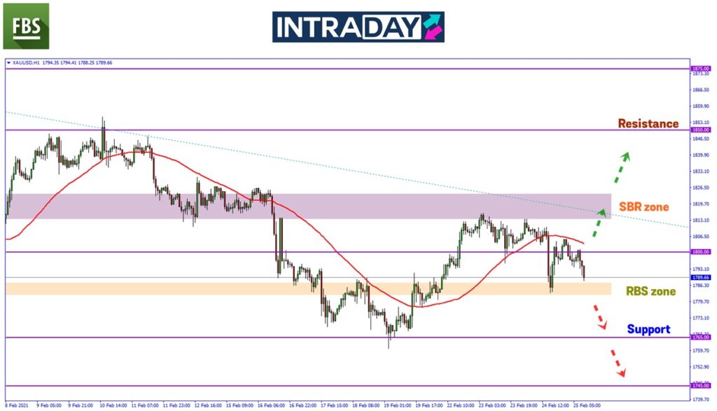 Sekiranya harga berjaya melepasi semula paras 1800.00, kenaikan harga yang diteruskan dilihat akan menuju ke zon SBR (support become resistance) 1820.00 sebelum kenaikan lebih tinggi akan ke paras 1850.00 semula.