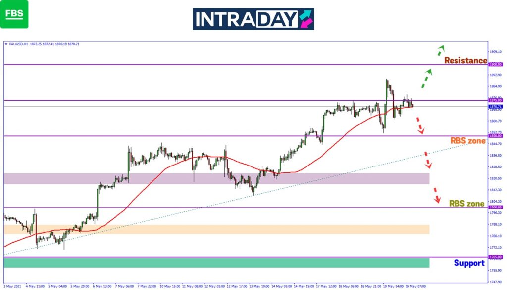 Selepas kenaikan emas harga terhalang pada paras rintangan 1875.00, penurunan dilihat dibuat pada sesi Eropah semalam menuju ke zon RBS (resistance become support) 1850.00.