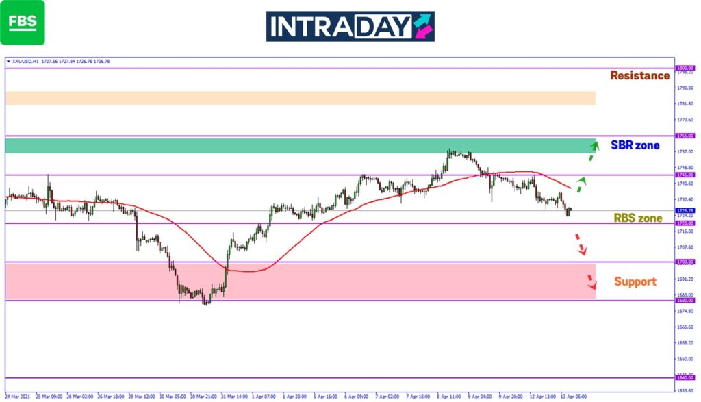 Penurunan harga dilihat akan menguji paras sokongan pada 1720.00 sebelum penurunan lebih rendah berkemungkinan akan kembali semula ke zon support pada 1700.00 dan 1680.00.