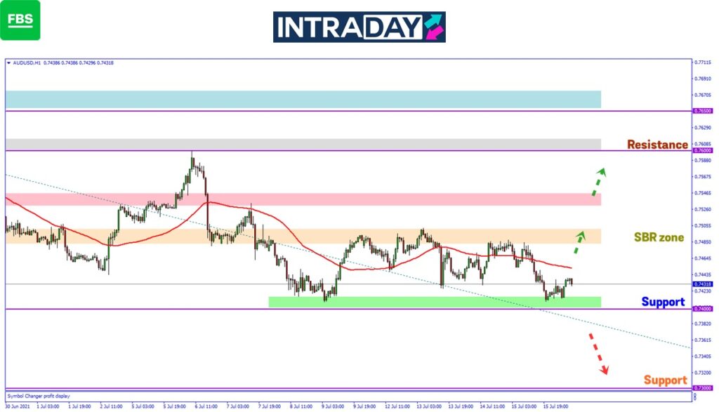 Sekiranya harga turun lebih rendah menembusi zon support 0.74000, sasaran seterusnya dilihat akan menuju ke paras 0.73000 dengan penurunan sekitar 100 pips.