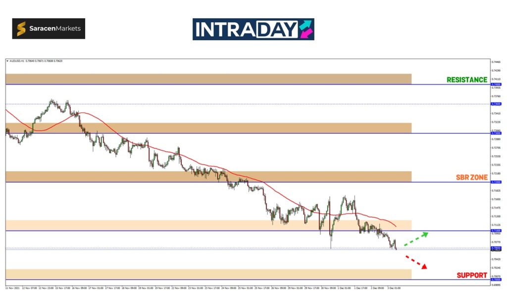 Sebaliknya jika harga berjaya membuat perubahan trend bullish, zon SBR (support become resistance) 0.71000 berkebarangkalian akan dicapai terlebih dahulu sebelum mampu mengorak langkah lebih gah.