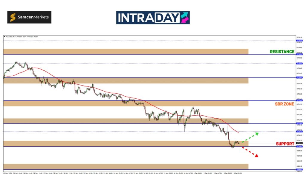 Sekiranya harga pada zon sokongan 0.70000 berupaya untuk kembali menyokong kenaikan, zon SBR (support become resistance) 0.71000 sudah semestinya akan menjadi hala tuju pertama untuk dicapai.