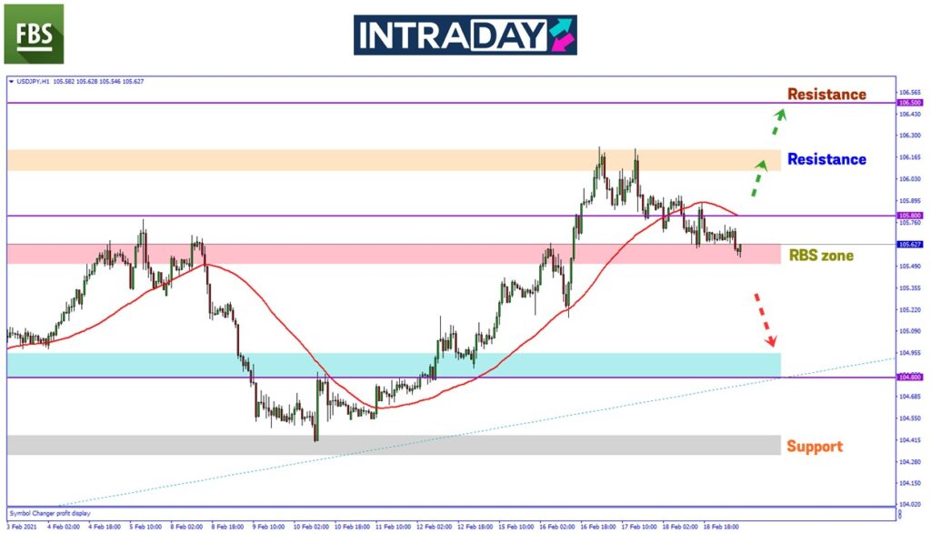 Zon RBS (resistance become support) 105.600 diuji pada dagangan sesi Eropah pada hari ini yang menjadi paras sokongan harga.