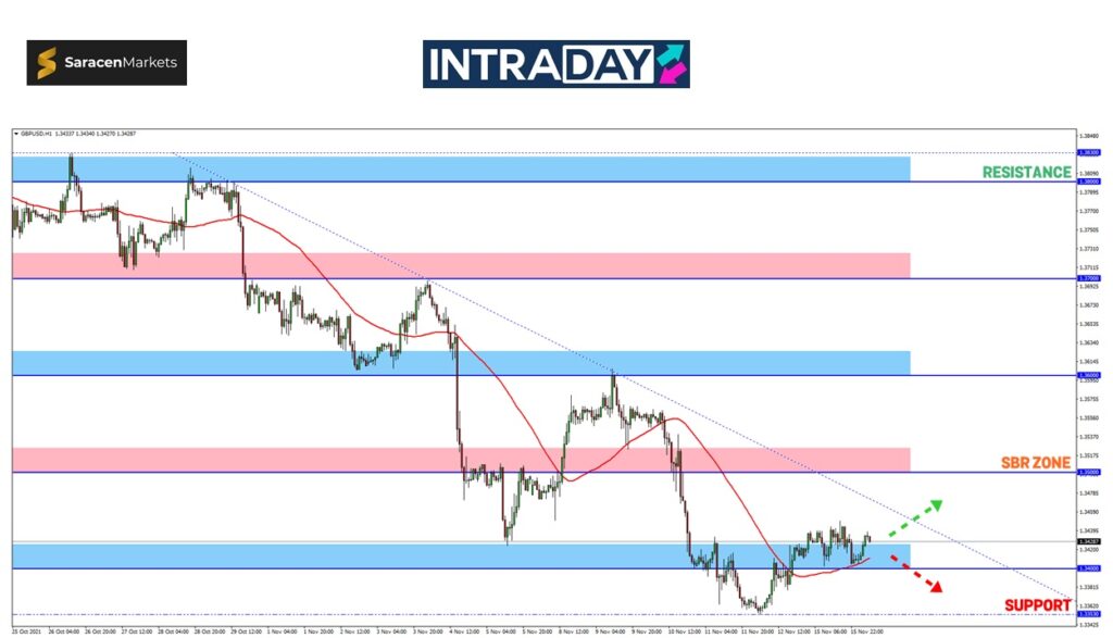 Memeriksa kepada carta pergerakan harga GBP/USD, harga dilihat kekal bergerak secara mendatar dan perlahan di atas zon sokongan pada 1.34000 pada sesi pembukaan dagangan awal minggu (Isnin).