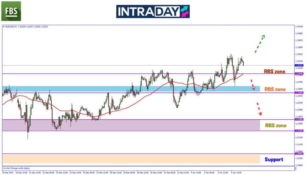 Zon RBS (resistance become support) pada 1.23000 akan menjadi paras sokongan harga sebelum kenaikan diteruskan semula.