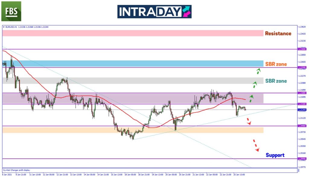 Namun jika harga berjaya membuat lonjakan semula, paras rintangan pada 1.21800 akan diuji sekali lagi sebelum harga menguji pula zon SBR (support become resistance) pada 1.22200.