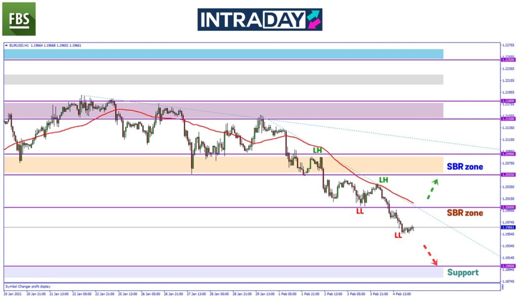 Selepas berjaya breakout zon support 1.20000, harga turun lebih rendah sekitar 40 pips ke paras 1.19600 sebelum bergerak perlahan dan menutup dagangan sesi New York sekitar tersebut.