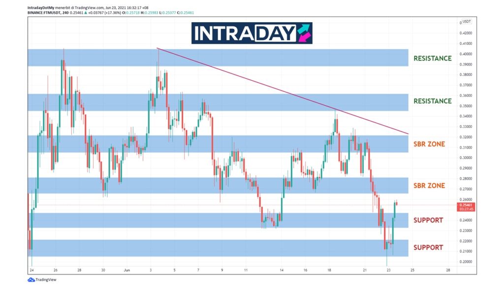 Sekiranya pergerakan harga FTM terus peroleh momentum kenaikan, paras SBR (support become resistance) sekitar $0.27 dilhat bakal menjadi paras tumpuan seterusnya untuk dituju.