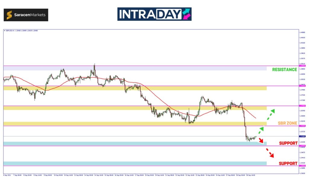 Pada carta harga pasangan matawang GBP/USD, harga nampaknya menonjolkan aksi ngeri dengan terjunan ke dasar untuk menguji zon sokongan 1.35000.