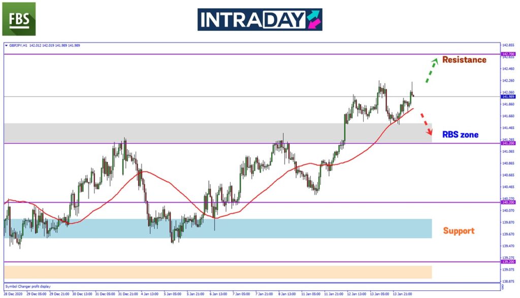 Namun jika harga kembali menjunam semula, zon RBS (resistance become support) 141.500-141.200 akan diuji semula.