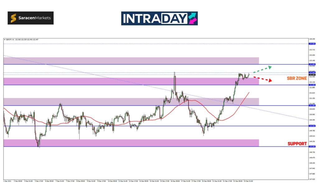 Lonjakan tersebut juga sama sekali telah kembali menguji paras ketinggian yang dicapai pada minggu lalu sekitar 152.600-152.000 yang mana ia turut dinilai sebagai zon SBR (support become resistance).