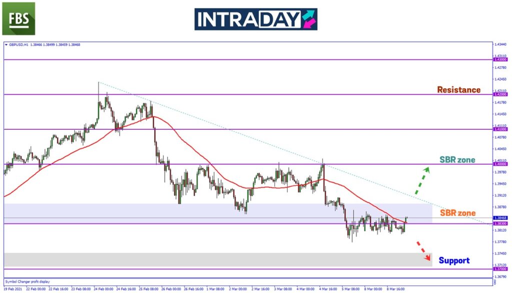 Pada carta GBP/USD semalam, harga mendatar di bawah zon 1.38500 namun tidak meneruskan penurunan melepasi 1.38000.