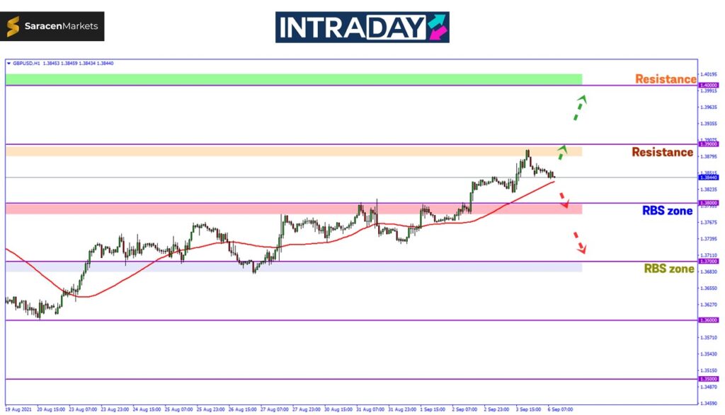 Namun jika harga kembali membuat penurunan semula, paras 1.38000 dilihat sebagai paras sokongan terbaru harga pada zon RBS (resistance become support).