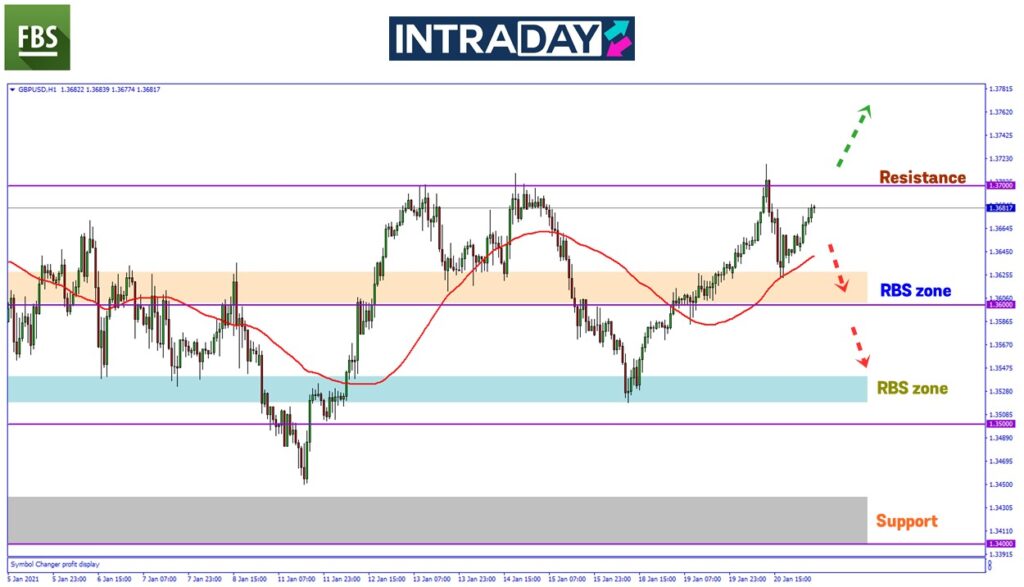 Namun jika zon resistance 1.37000 kekal kebal untuk ditembusi, harga dijangka menjunam semula sehingga ke zon harga sekitar 1.36000.