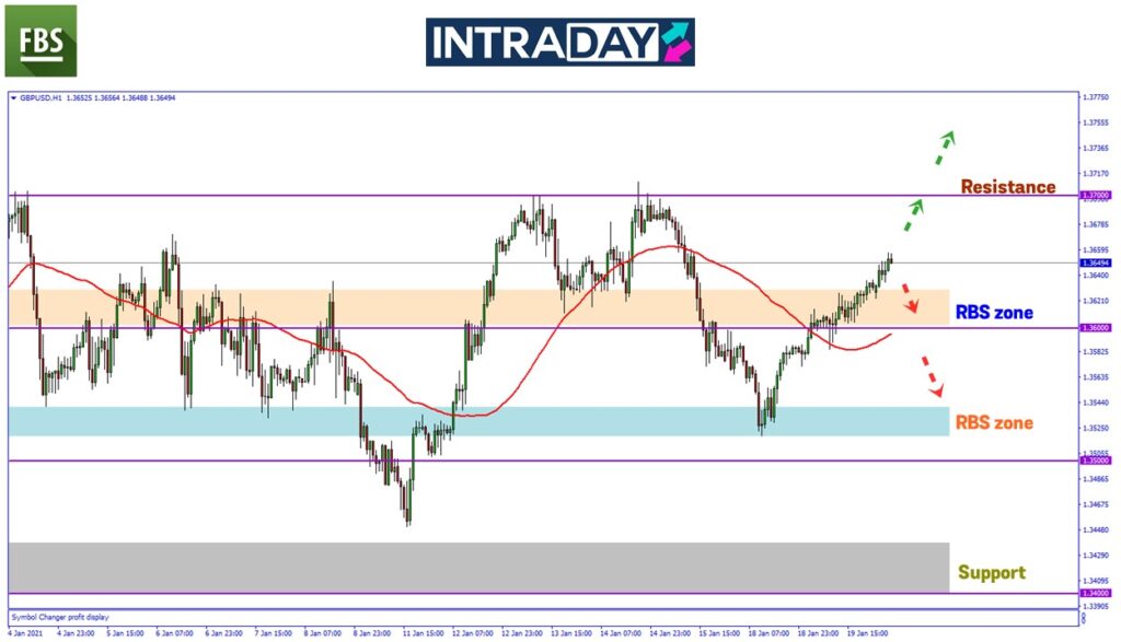 Kenaikan harga pada carta GBP/USD tidak begitu ketara namun telah memberikan corak kenaikan yang jelas selepas melepasi zon SBR (support become resistance) 1.36000.