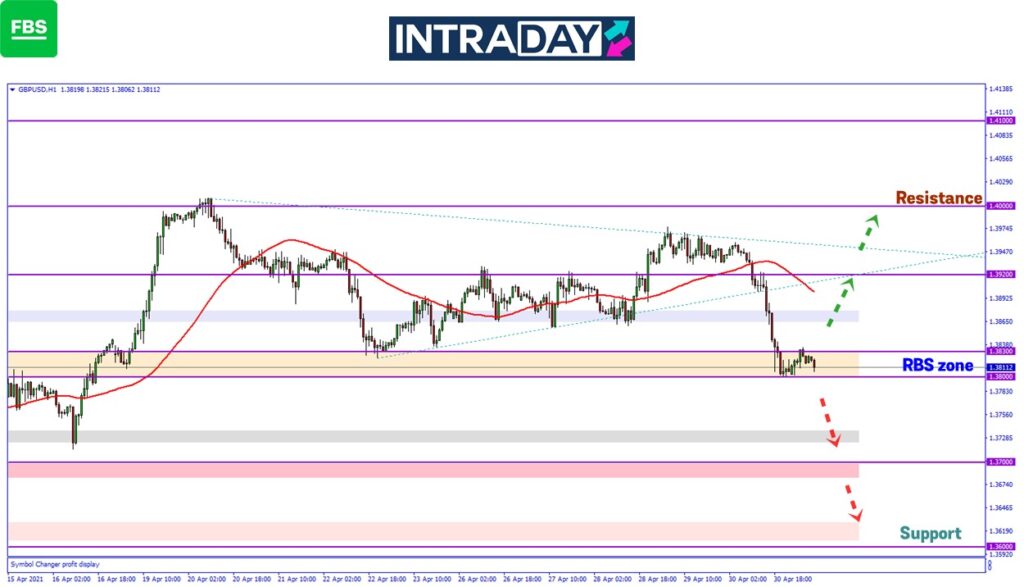 Menyambung dagangan pada awal minggu dan permulaan Mei, harga perlahan pada zon RBS 1.38300-1.38000 yang akan menentukan pergerakan harga seterusnya.