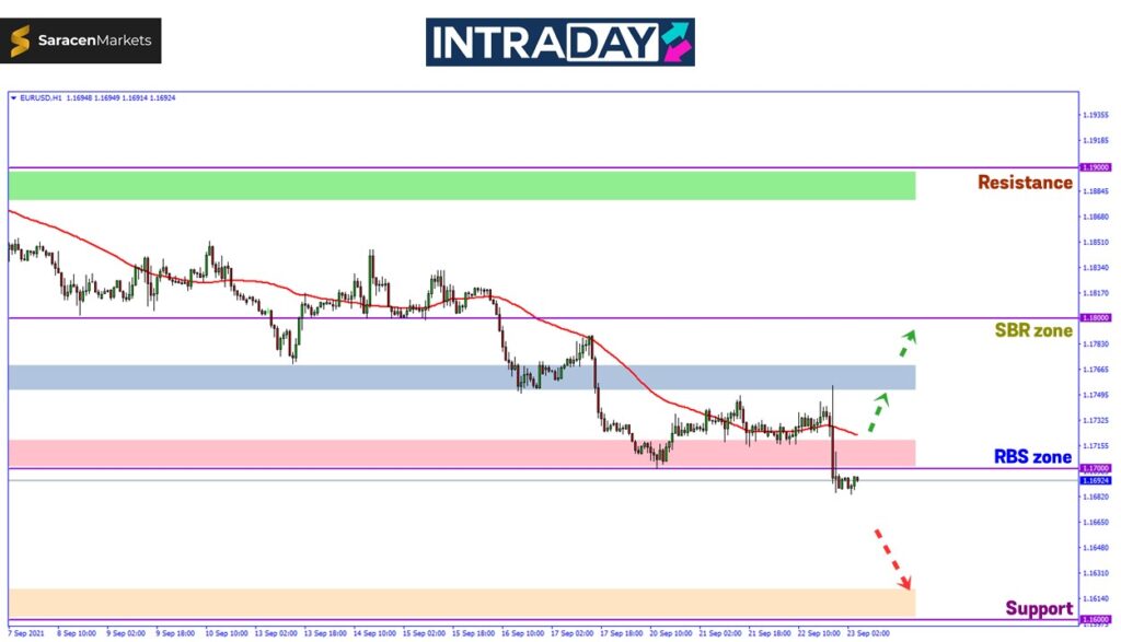 Pada carta pasangan mata wang EUR/USD ketika mesyuarat FOMC memperlihatkan kenaikan awal harga menguji paras 1.17500 yang menjadi support harga minggu lalu, sebelum harga menjunam di bawah zon support 1.17000.