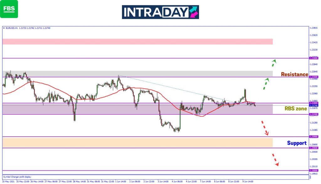 Kenaikan harian mencapai ke paras sekitar 1.22180 sebelum susut semula ke zon RBS (resistance become support) 1.21800.