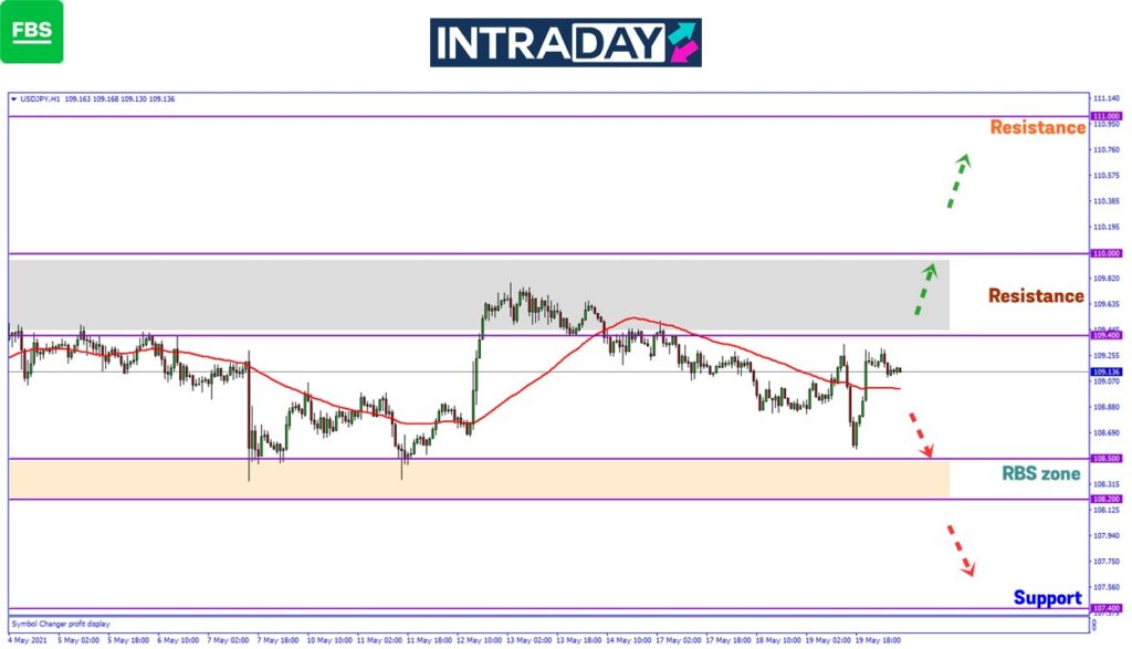 Sebaliknya jika harga membuat penurunan semula, paras sokongan harga dilihat pada 108.500-108.200 yang bertindak sebagai zon RBS (resistance become support) pada dagangan terdahulu.