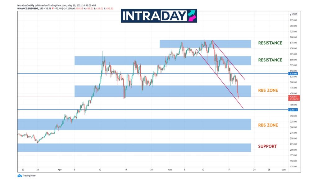 Pergerakan harga bagi BNB juga tidak ketinggalan untuk membuat penurunan melebihi 40% pada pembukaan pasaran untuk bulan ini setelah ia membuat paras ketinggian sepanjang masa (ATH) yang terbaru.