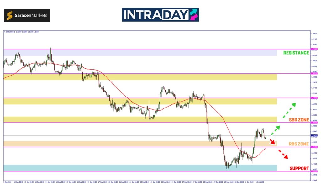 Sekiranya harga pada carta GBP/USD terus disokong untuk mencatatkan peningkatan, zon SBR (support become resistance) 1.36000 akan menjadi hala tuju seterusnya untuk diuji.