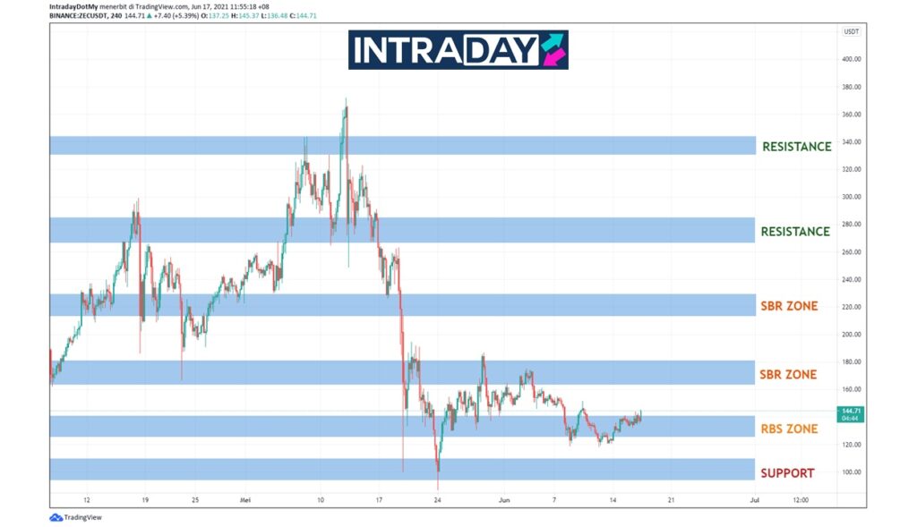 Pandangan sudut teknikal, ZEC dilihat berjaya menembusi zon RBS (resistance become support) sekitar $140 dimana paras rintangan tersebut diuji beberapa kali sebelum ini.