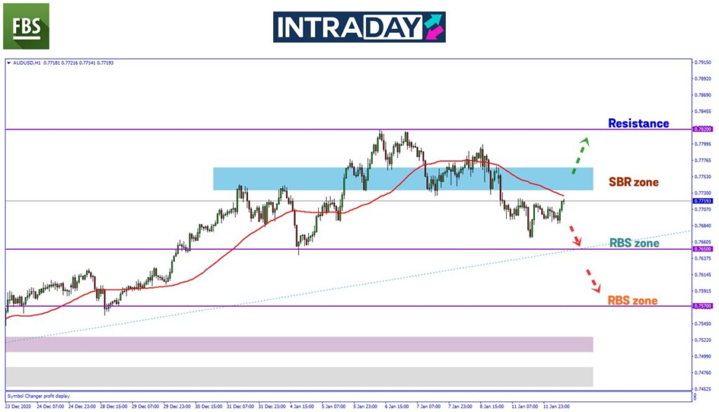 Pada carta pasangan mata wang AUD/USD, harga menunjukkan penurunan semalam selepas pergerakan mendatar harga di bawah resistance 0.78200 di penghujung minggu lalu.